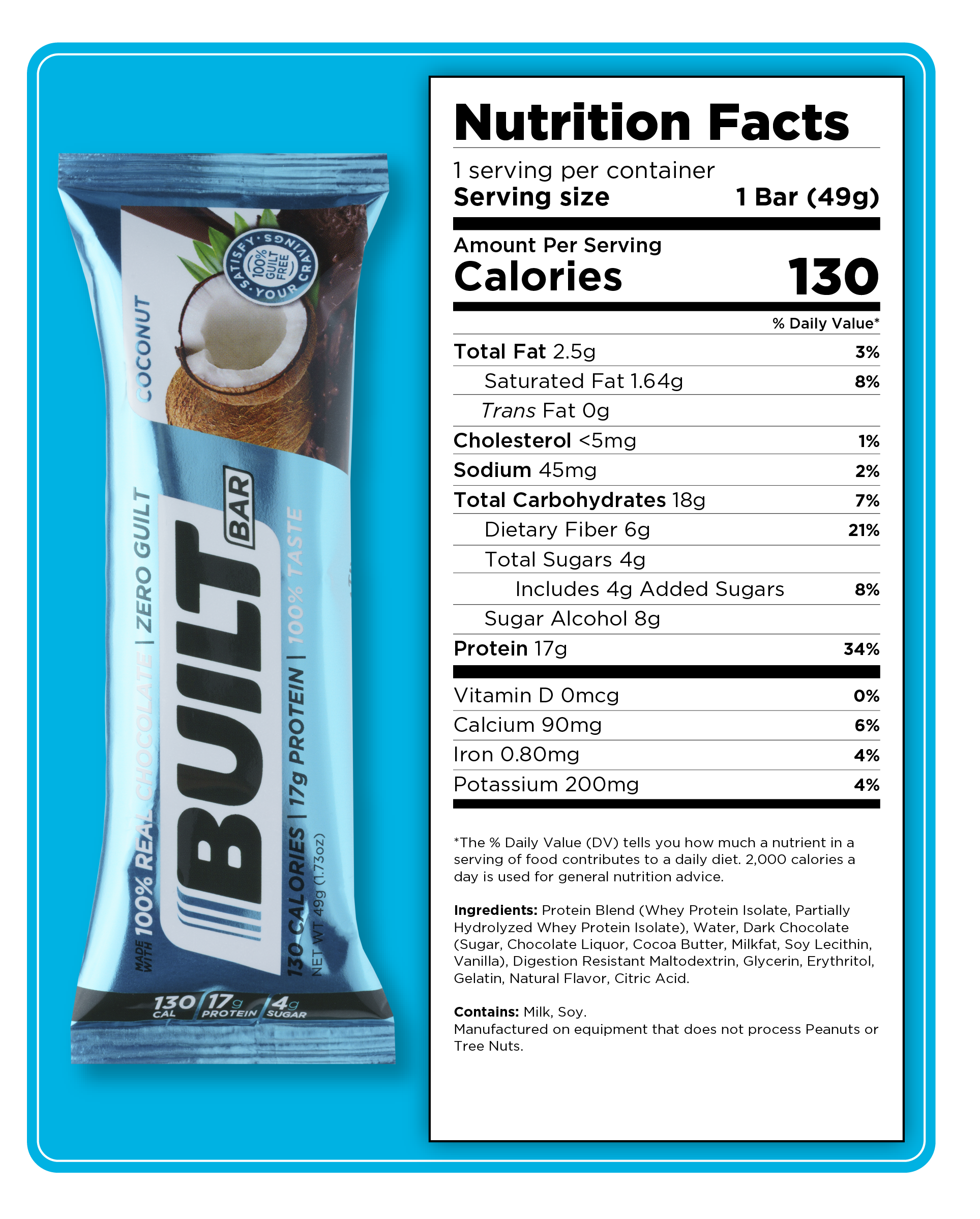 Built Bar is truly a standout among protein bars. With its exceptional nutritional profile and so many delicious flavors, Built Bar is the favorite protein bar of many discerning fitness trainers and fitness enthusiasts alike.