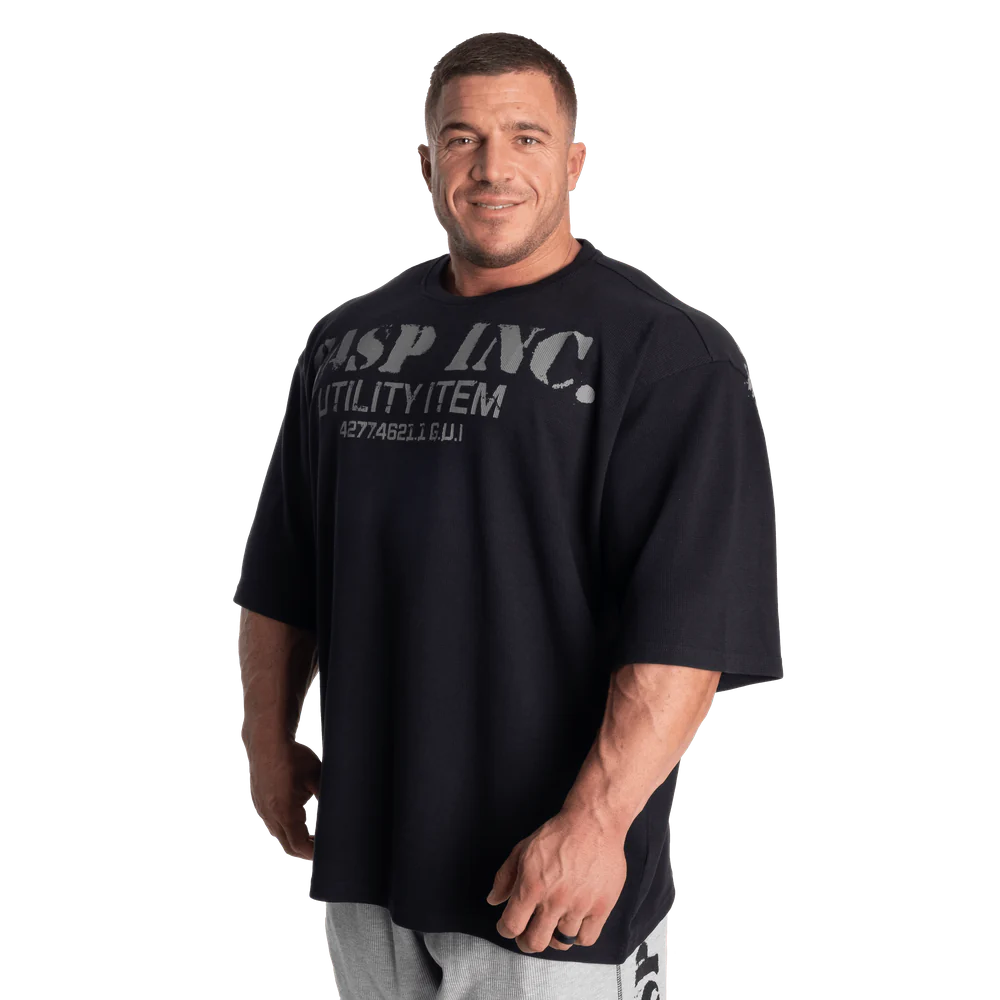 The Iron Thermal Tee is not your regular tee. It combines the oversized fit of our popular Iron Tee with our appreciated thermal fabric. This cotton/polyester blend is breathable and light weight, and with elbow length sleeves the Iron Thermal Tee is ideal both as a cover up and a standalone item. With a chest print inspired by our Thermal Gym Sweater and a bold distressed back print that spans from shoulder to shoulder this tee makes a clear statement; You are a part of the GASP Iron World. Size up or down if you prefer a more or less oversized look.