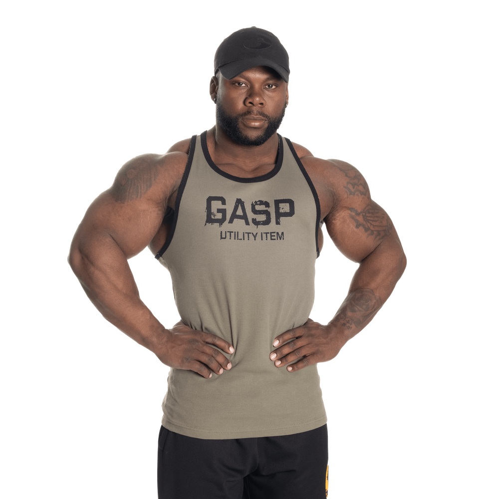 The Ribbed T-back is designed with a tighter fit for those who wants something lighter to train in that is not oversized. It’s made out of our popular cotton and lycra rib which allows it to keep its shape through grueling workouts and endless washing cycles. Equipped with a bold GASP print across the chest, a small GASP print in the neck and a tighter fit this tank is designed to the dedicated bodybuilder.