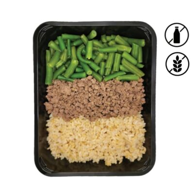 Ingredients: Extra-lean ground beef, brown rice, green beans, sea salt, black pepper, spices and olive oil.