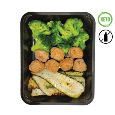 Ingredients: Ground beef, broccoli, grilled zucchini, sea salt, black pepper, paprika, onion powder, garlic powder, white pepper, spices and olive oil.