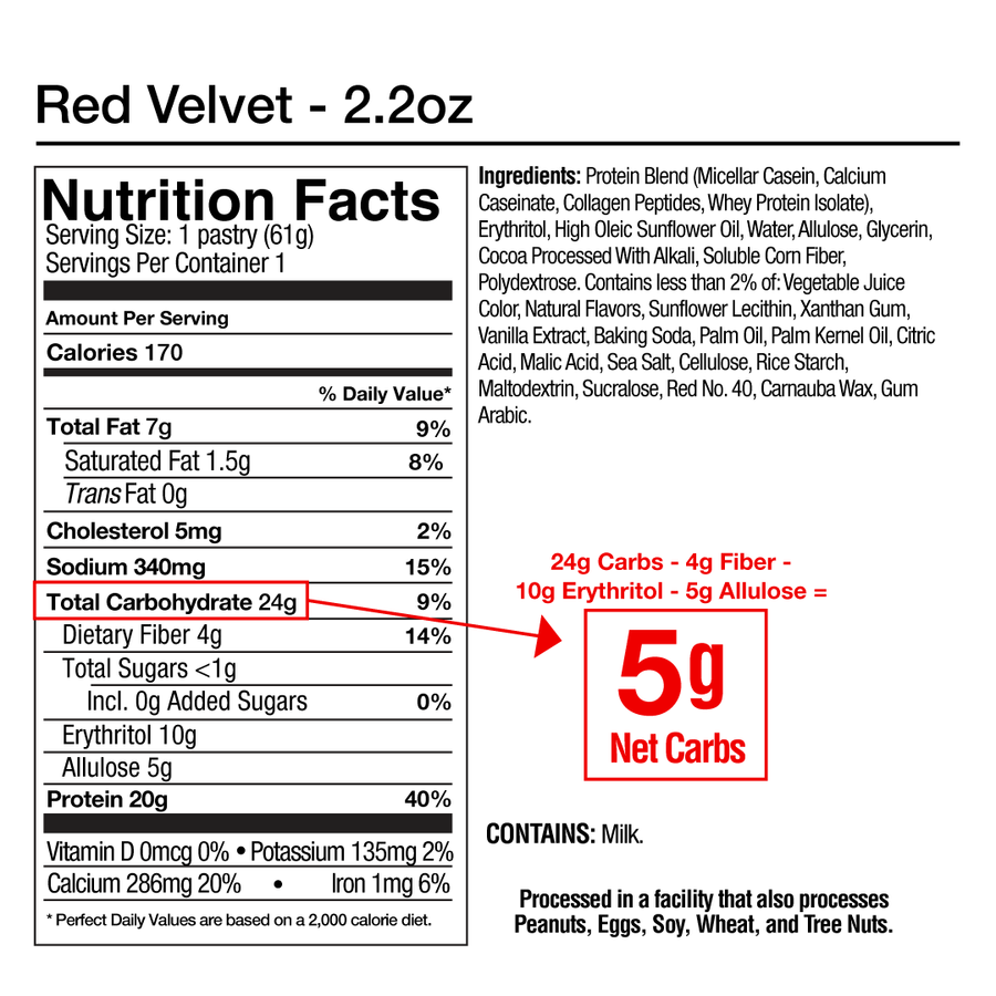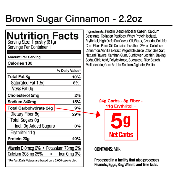 - 20g Protein, 5g Net Carbs, 0g Sugar, 8g fiber, 180 Calories, 8g Fat