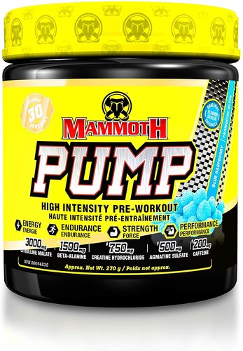 MAMMOTH PUMP - Fully Loaded powerful pre-workout formula with scientifically researched ingredients in effective doses, for Extreme Energy, Hard Muscle Gains and Massive Muscle Pumps! 3000 mg of CITRULLINE MALATE for superior muscle pumps! 1500 mg of BETA ALANINE for increased strength & endurance! 750 mg of CREATINE HCL for greater recovery & muscle growth! 500 mg of AGMATINE SULFATE for explosive power & performance! 500 mg of TYROSINE for mood & adrenal function support! 1000 mg of TAURINE for improved focus & alertness! 200 mg of CAFFEINE for longer lasting energy!