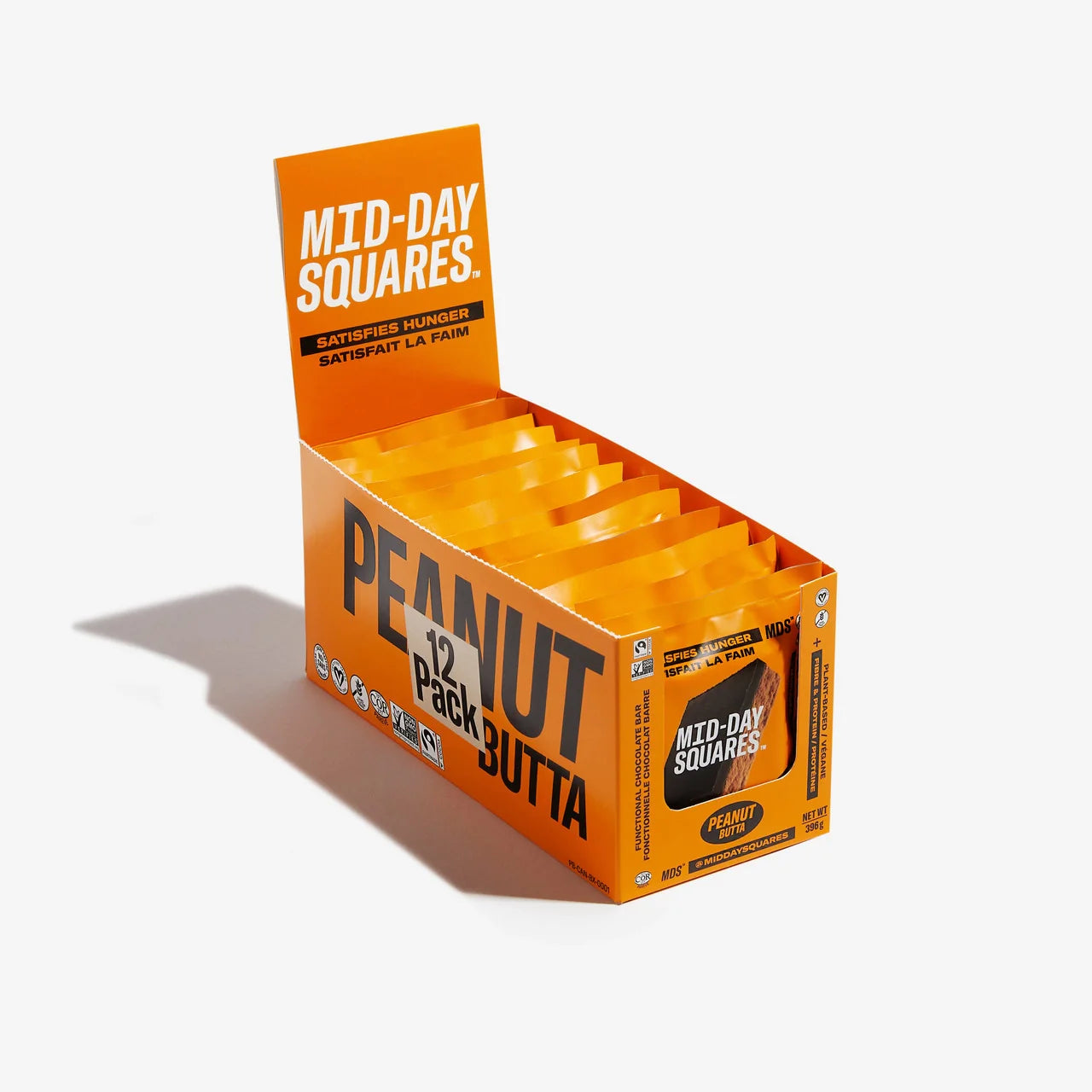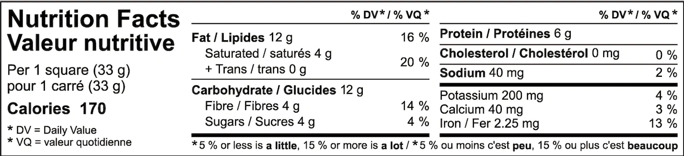 Ingredients: Dark chocolate (Fairtrade cocoa butter, Fairtrade cocoa powder, organic coconut sugar, organic brown rice powder, salt), Organic almonds, Organic maple syrup, Organic carob protein, Organic tapioca syrup, Organic fava bean protein, Organic jerusalem artichoke powder, Olive oil, Organic sorghum flakes, Fairtrade cocoa powder, Organic gluten-free oat flour, Organic pea protein, Salt. Contains: Almonds May Contain: Hazelnuts, Peanuts, Sesame