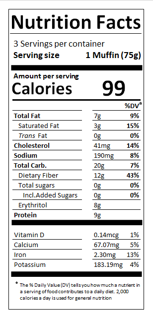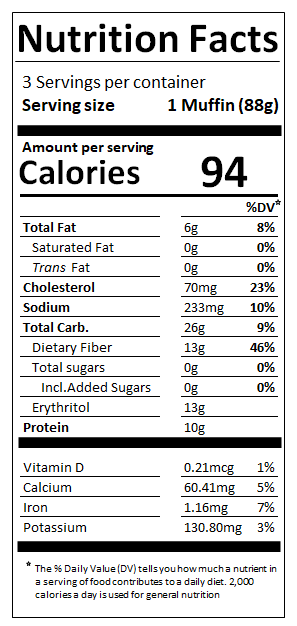 Recommended Storage: Smartmuf’ns®must be refrigerated upon arrival, to last for up to 2 weeks. Or stored in the freezer for a longer shelf life and optimal freshness. Smartmuf’ns® can be thawed at room temperature or can be microwaved directly from the freezer for approximately 30 seconds.